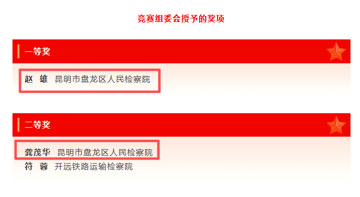分别荣获一等奖、二等奖、十佳公诉人、