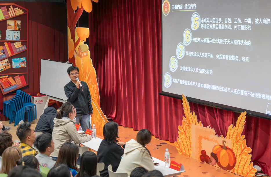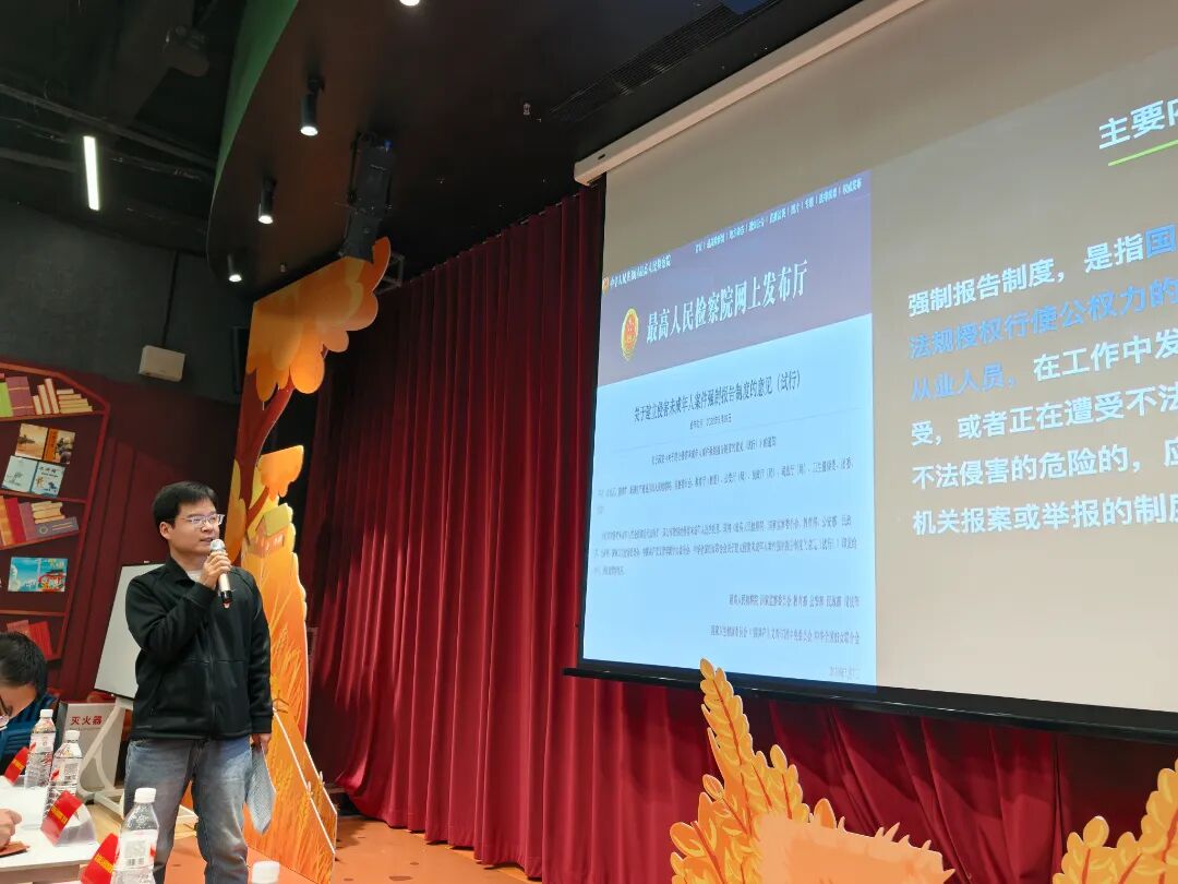 课堂上,支部党员、检察官王刚聚焦强制报告制度,围绕制度的背景意义、履行主体、报告情形、报告方式进行系统解读,强调校外教育培训机构教师作为密切接触未成年人的行业人员,肩负着不可推卸的法定报告责任,必须成为守护孩子的“前端哨兵”。