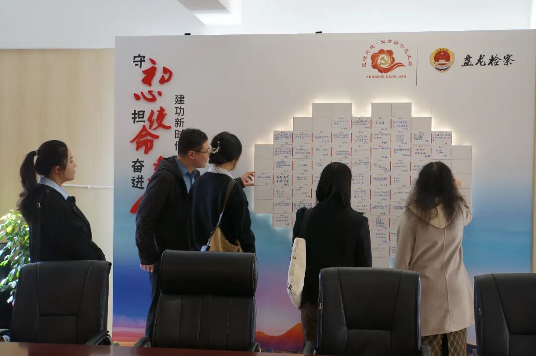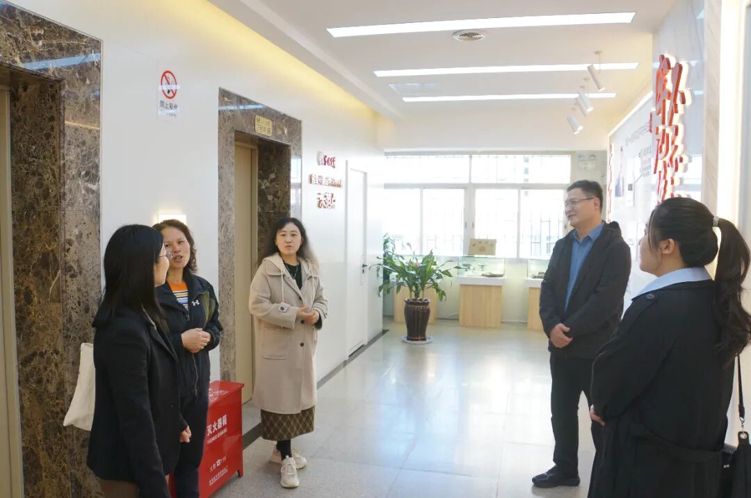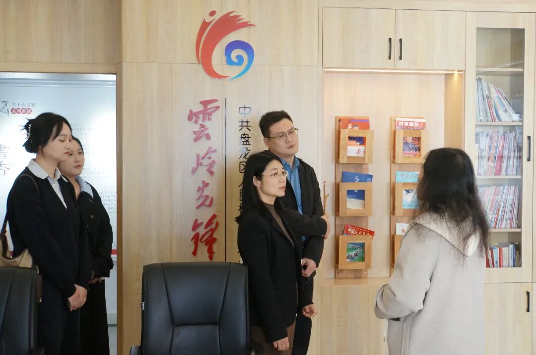 山阳区检察院同仁参观了检务公开大厅和12309检察服务中心。参观过程中,双方就如何通过窗口服务展现检察形象、传递司法温度进行了现场交流。随后,一行人走进党建文化长廊,深入了解盘龙检察院将党建与检察文化深度融合的实践做法,并就如何通过文化阵地建设强化队伍凝聚力、提升司法公信力交换了想法和意见。