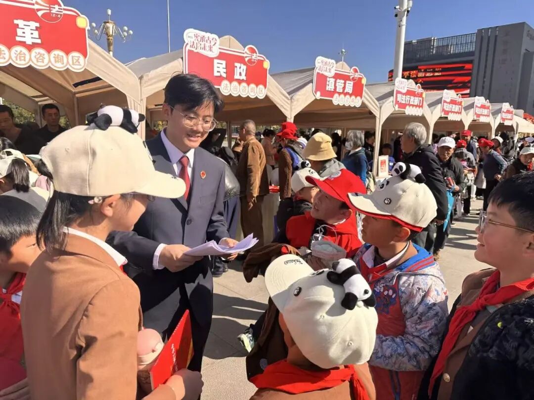 与此同时,现场的法治文艺演出以群众喜闻乐见的形式演绎法治内涵,法治打卡区、展望区等营造出浓厚的沉浸式宣传氛围。检察干警们穿梭其中,既是普法者,也是法治氛围的共建者。他们多重参与,从发放法治宣传册到趣味的游戏互动,从专业的答疑解惑到融入整体的法治文化场域,构成了一个立体、生动、高效的普法实践。