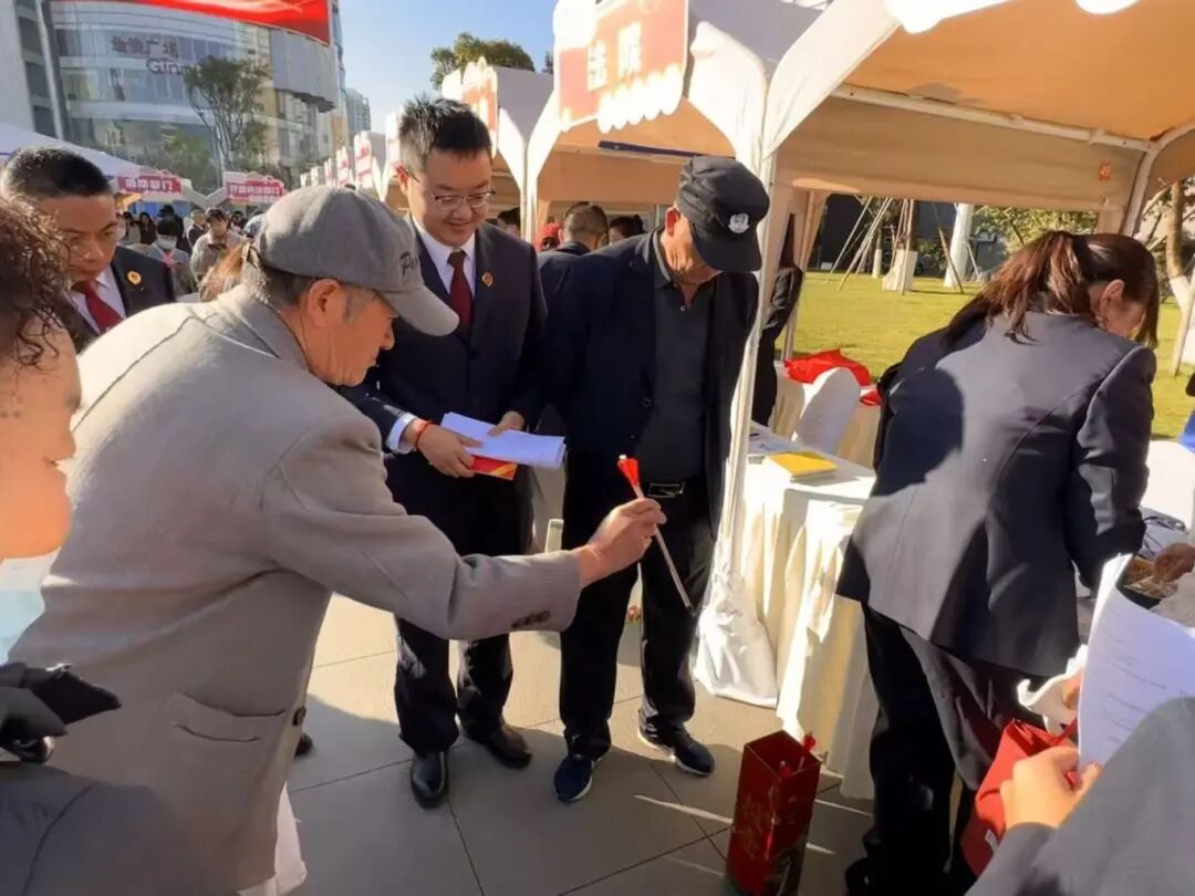 一旁法治咨询区,检察干警面前,聚集了一些前来咨询的市民群众,他们的问题聚焦于民生热点:“老板拖欠工资该怎么合法维权?”“劳动合同签订要注意哪些陷阱?”“工伤认定有哪些程序?”……检察干警们结合法律法规与司法实践,耐心细致地提供法律分析和解决路径指引,他们不仅“答疑惑”,更“指门路”,将专业的司法服务转化为通俗易懂的建议,让人民群众感受到法治的力度与温度,真正体现了“民有所呼,我有所应”。
