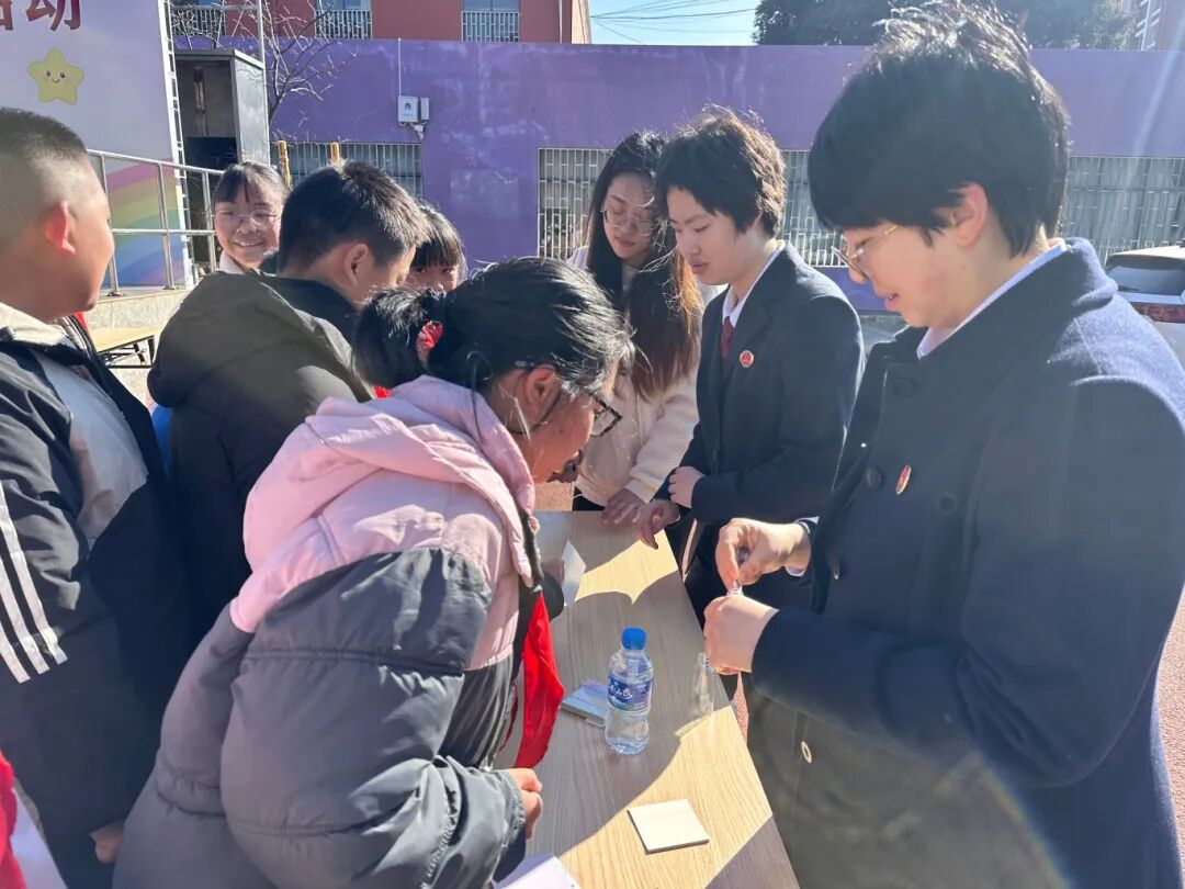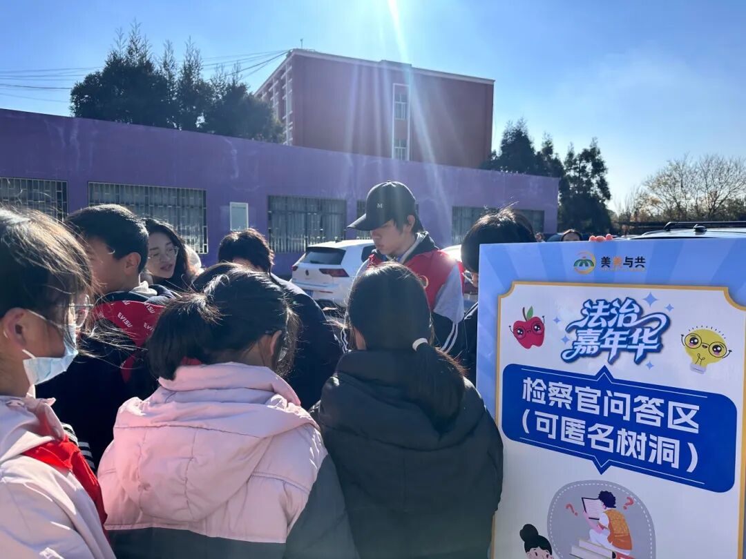 随后展开的“法治嘉年华”环节,将这次“全新尝试”的魅力展现得淋漓尽致。操场上,五大主题摊位摆开,学生们手持“法治闯关卡”,在“玩”中“学”,在“乐”中“悟”。