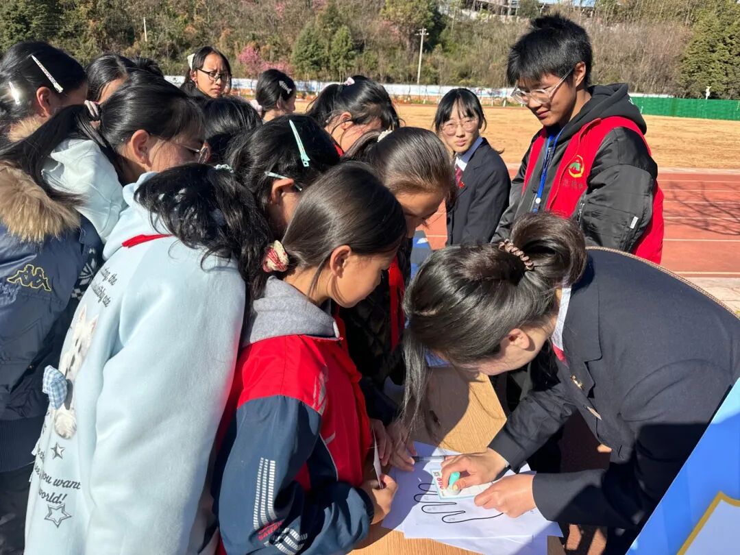活动现场,最引人注目的莫过于“志愿服务展示与招募区”。党员教师和青年志愿者们热情地介绍着校园志愿服务的种种可能。同学们积极响应,纷纷在签名墙上留下自己的名字和成长期许。