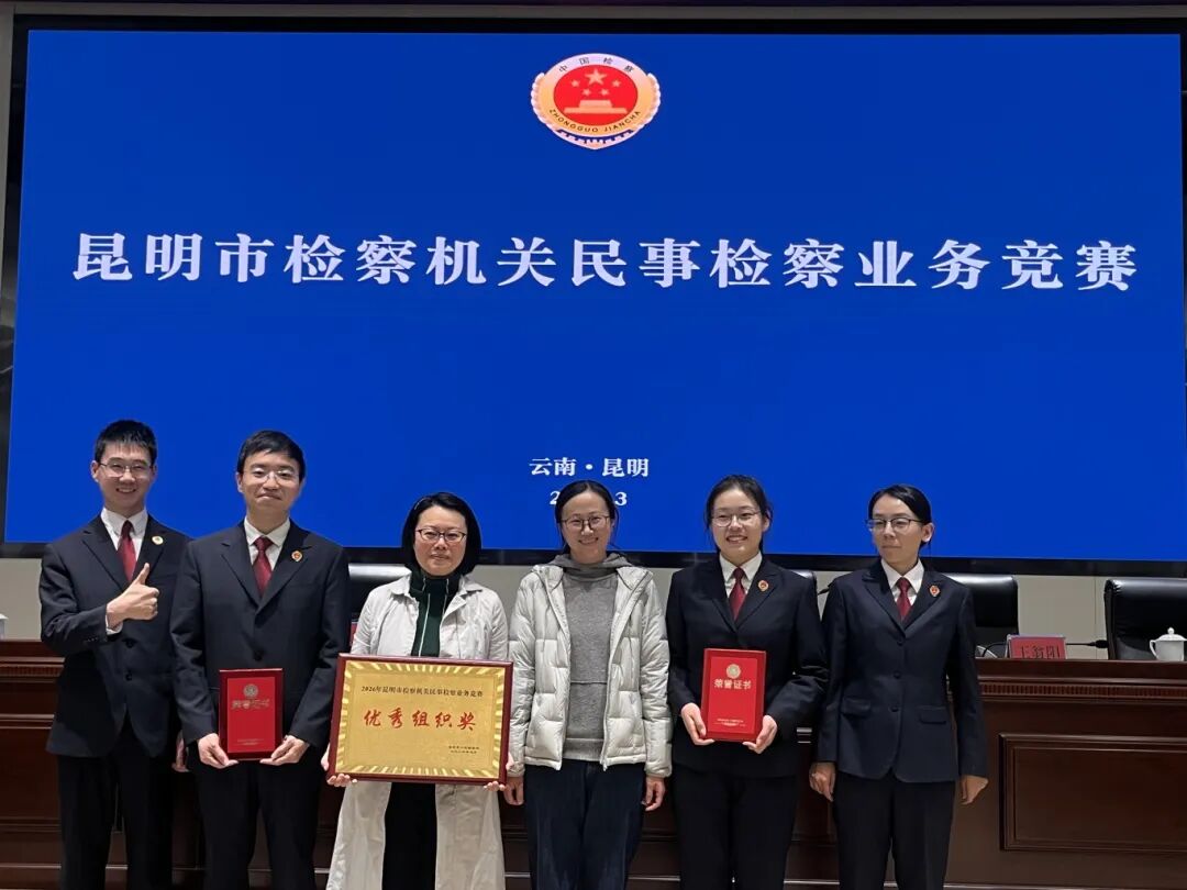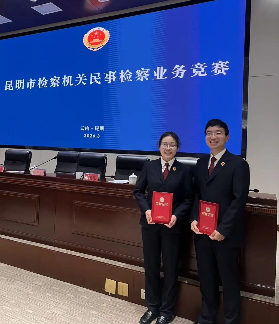 日前,2026年昆明市检察机关民事检察业务竞赛圆满落幕。在这场汇聚全市检察精英的激烈角逐中,盘龙区人民检察院的两名年轻干警——邓高峰、甘雪娇,在综合知识笔试、案件审查与文书制作、汇报答辩三轮高强度比拼中沉着应战、脱颖而出,双双获评“昆明市检察机关民事检察业务能手”称号;同时,盘龙区人民检察院因组织工作扎实、保障有力,被授予“优秀组织奖”。